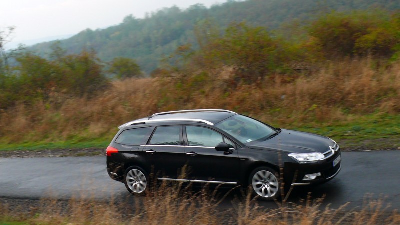 Az utastér méréseink alapján mindeközben még egy 5-ös BMW-nél, vagy éppen egy E-osztályos Mercedesnél is halkabbnak bizonyul, s szélsőséges körülmények között is csupán a felül igencsak szép, recsegős, s módfelett szerethető orgánummal dolgozó dízelmotor férkőzhet a fülünkhöz. Nem is csoda, hogy az ígéretes dallamok mellett időnként még vérszemet is kaphatnánk egy kis kanyarvadászatra, ám erre a franciák középkategóriása alig kapható. A közvetlenségében nem kritizálható, s a sztereotípiákkal A nagyobb emelkedők legyőzése nem akadály számáraellentétben nem is túlszervózott volán ugyan még társunkul is szegődhetne az illetlen vallatás során, a karosszéria erős dőlési hajlama, és a töretlenül intenzív, ám kiszámítható alulkormányozottsági viselkedés jelzi, hogy nem a szerpentinek meghódítása lesz a C5-ös fő műsorszáma.