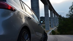 Komoly nyiszogások forrása az ügyes dobozkaSzerencsére nem az alapokkal volt gond. A jól megépített 'széria belső' még szilárd minőséget sugallt – leginkább a feláras opciók voltak zajok, nyöszörgések állandó forrásai. Az eltolható, rekeszekkel telezsúfolt, kiválóan variálható könyöklő doboz kiváló példa arra, hogy mi történik, ha sokat akar az a bizonyos szarka. Miközben sziporkázik a jó ötletektől, a megvalósítás komoly csorbát szenved, így amellett, hogy közel centiméteres hézagon lötyög a sínben a szerkezet, még nyekereg is, ha azt legalapvetőbb funkciójára, vagyis könyöklésre használjuk. Ám minden rosszban van valami jó: legalább mindig a pontos, egyterűhöz mérten kellő visszajelzést biztosító kormányon tudtam tartani a kezem, hogy kihasználjam a FlexRide névre hallgató, állítható lengéscsillapítású remek futómű (244 ezer forintos opció) sokszínűségét, valamint a Watt-rudas csatolt lengőkarral is kiválóan dolgozó beállítás kvalitásait.