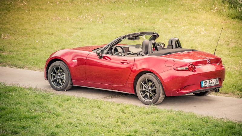 Azt hiszem ennyiből már világos, hogy közel sem tökéletes autó az MX-5, mégis rendkívül könnyű beleszeretni: a pörgős erőforrás, a hátsókerékhajtás, az érces orgánum és a szabadságot nyújtó kabrióélmény egyszerűen verhetetlen. A kis roadster ráadásul nyugodt közlekedésre is tökéletesen alkalmas: habár nem könnyű, de ha mégis inkább a környezetre és a nyitott tetejű autózás élvezetére fókuszálnánk, azt is megtehetjük, akár hűvösebb időben is, köszönhetően a hatékony klímának és az ülésfűtésnek. Az ablakok felhúzásával – 180 centis magasságig – ráadásul majdnem 130-ig élvezhető marad a kabriózás is, noha ilyenkor már akadhatnak problémák az autón belüli kommunikációval. Az autóban egyébként a tető felhúzásával sem uralkodik túl nagy csend: 100-ig még nincs nagy gond, de felette már zavaróan erős a menetszél hangja, és a futómű felől sincs túl vastagon szigetelve az autó. Egy ilyen típusú négykerekű esetében persze nem várhatunk csodákat.