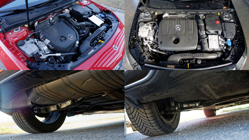 Természetesen minden új A-osztály teljesíti a jelenlegi legszigorúbb, Euro6d-TEMP károsanyag-kibocsátási normákat: a benzinesek benzin-részecskeszűrő, a dízelek pedig SCR-katalizátor és AdBlue-befecskendezés segítségével. A lemezek alatti Renault technológia túlsúlya a hozzánk hasonló autómániásokat zavarja, de az A-osztály fő célközönségét nem a szűk benzinvérű réteg képezi, másrészt pedig szerencsére van lehetőségünk ‘rendes’ Mercedes hajtásláncokat is venni: a 2-literes motorok (A220, A250, A35 AMG, később pedig az A200d és az A220d) kivétel nélkül friss Mercedes-Benz fejlesztések. Ráadásul ez esetben nem csupán az erőforrások, hanem a hozzájuk szériában járó hétfokozatú duplakuplungos automaták is, amik elnevezésüket tekintve (7G-DCT) megegyeznek a Renault motorokhoz kapcsolt automatákkal, a valóságban azonban semmi közük sincs hozzájuk, hiszen komolyabb szerkezetek és magasabb nyomatékra tervezték őket.