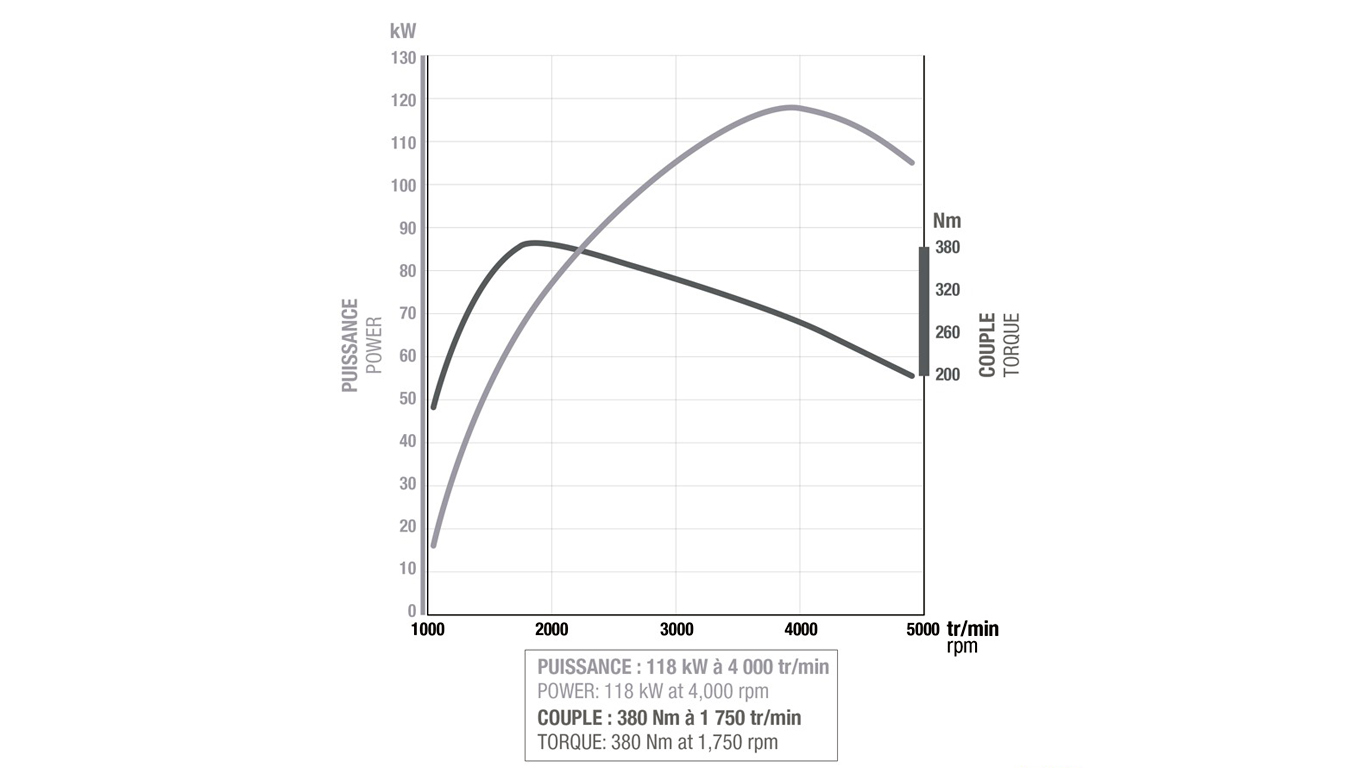 A két, szekvenciálisan működő turbónak köszönhetően már alacsony fordulaton is bőséges nyomaték és erő áll rendelkezésre és magas fordulaton sem fullad ki az új erőforrás. A csúcsnyomaték 90 %-a már 1500-as percenkénti főtengelyfordulattól kihasználható. A hűtés és a súrlódás csökkentése, valamint a turbófeltöltő tervezése során a Renault a Forma-1-ben szerzett tapasztalatait is felhasználta.