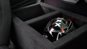 A rendeltetésről ez a kép is tanúskodikA külső azonnal elárulja a típust. A Bimota háromszínű festéséhez feketére fényezett 19 colos kerekek járnak. A belső Alcantarába öltöztetett, a vörös varrás pedig csúcsra járatja a hangulatot. A hátsó ülések helyén egy dobozt találunk, amelyben két bukósisak kaphat helyet, de a versenypályás napokhoz két GoPro kamera is helyet kapott a fedélzeten. A gyári központi rendszert egy TomTom Bridge információs rendszer egészíti ki – mert egy képernyőnél kettő ezek szerint csak jobb lehet.
