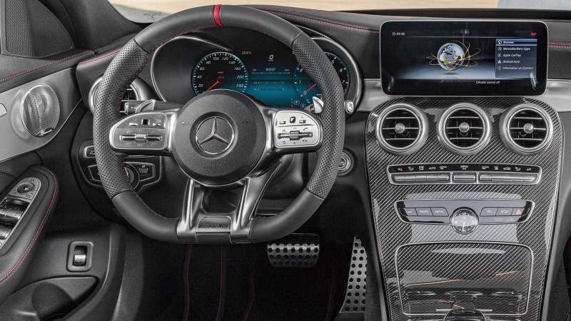 Még modernebb, még sportosabb - galériaAz utastérben ugyancsak az „átlagos” változatok frissített funkcióival és elemeivel találkozhatunk, így például a nagyobb multimédiás rendszer, a teljesen digitális műszerfal és egyéb finomságok is feltűnhetnek. Persze van néhány kifejezetten AMG specifikus változás is, mint az új sportkormány, a piros kontrasztvarrás vagy éppen a karbon betétek. A multimédiás rendszer egy AMG menüponttal is gazdagodott, amiben olyan információkat találhatunk meg, mint a motor és váltóolaj hőmérséklete vagy a turbónyomás, de innen a részletes beállítások is elérhetőek, illetve G-erő mérő és stopper is van.