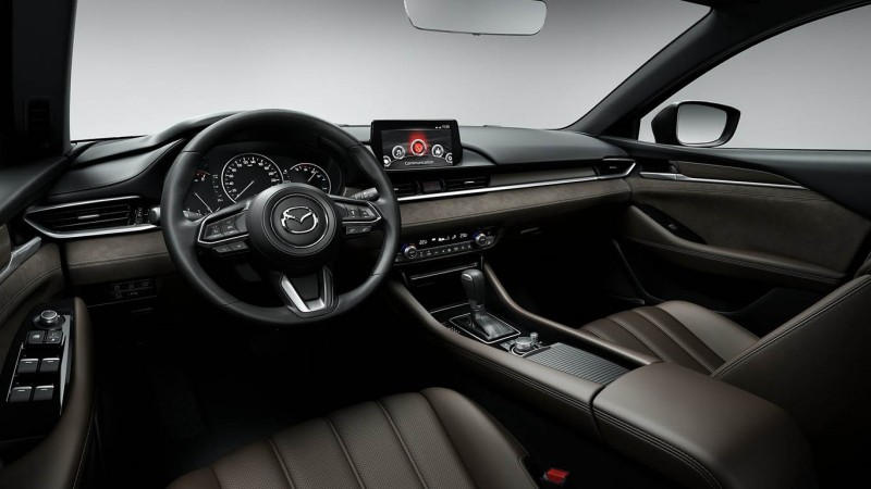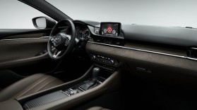 Az utasteret szinte teljesen átszabták a mérnökök, aminek köszönhetően még az eddiginél is finomabb megoldásokkal és anyagokkal találkozhatunk majd, a csúcsverzióban például Alcantara ajtó és műszerfali betétek, különleges fabetét és átfogó bőrkárpitozás is van. Emellett a klímakonzol is megújult, a változatlan szoftverrel dolgozó központi rendszer pedig határozottabb kontrasztú, élesebb megjelenítésű 8 colos képernyőt kapott. A CX-5-höz hasonlóan a HUD immár a szélvédőre is vetíthet, a műszercsoportban pedig egy 7 colos, személyre szabható színes kijelzőt találunk. A Mazda6 összességében még komolyabb benyomást tesz majd a frissítés után kívül és belül egyaránt.