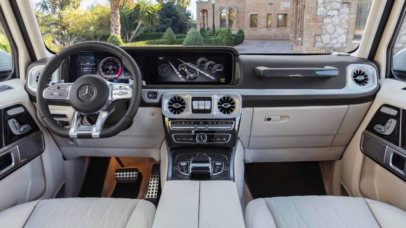 Aki még tovább szeretné fokozni az abszurditást, az vadrácsot is kérhet a sportos első lökhárítóra, míg az AMG Night csomag 22 colos keréktárcsákat, sötétített fényszórókat és néhány fekete díszítőelemet tartalmaz. Az utastérben a szokásos AMG féle módosításokkal találkozhatunk, így nem maradhatott el a sportkormány, a karbon betétek, az AMG plakettek és a sportosabb ülések sem. Extrák terén természetesen igencsak bő a választék, de a G63 már alapáron is igencsak magas felszereltséget tudhat magáénak.