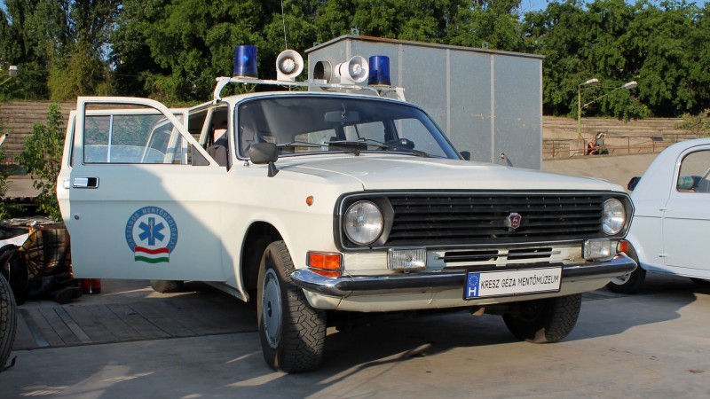 A közúti négykerekű szekció szintén nem szégyenkezhetett, hiszen a sok szép szocialista járgány, például a kétajtós Skoda páros, a Trabantokból és Wartburgokból álló kétütemű raj és a Zsigulik mellett részt vett a rendezvényen egy szószerinti múzeumi darab is az 1987-es, teljesen eredeti állapotban megőrzött Volga M24-es személyében. A kárhelyparancsnoki négykerekű az Országos Mentőszolgálat kötelékébe tartozott, ahol jól ismerték érkezése előtt is a típust, hiszen már a hetvenes években megjelent az OMSZ-nél a szovjet technika, ma pedig a Kresz Géza Mentőmúzeum ápolja.