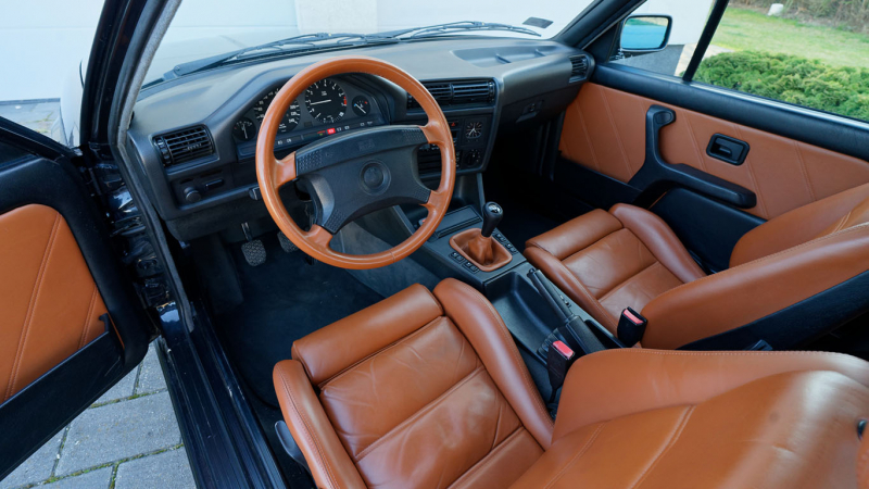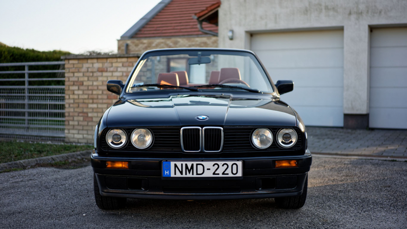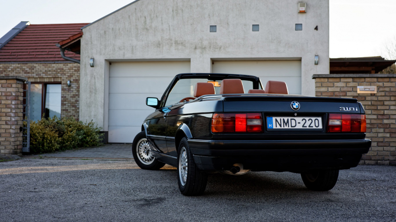 Főszereplőnk tehát az utolsó E30 kabriók egyike és értékét tovább növeli, hogy felszereltsége párját ritkítja: szervokormány, ABS négy (és elöl hűtött) tárcsafékkel, négy elektromos ablak és tükrök, komoly rádiós magnó, kihúzható combtámaszos bőr sportülések, ülésfűtés, hátsó fejtámlák, légzsák, bőr kezelőszervek, könnyűfém keréktárcsák, központi zár és klímaberendezés.