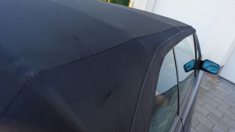 A vékonyka, mindössze egyrétegű, szigeteletlen, ráadásul egy egyszerű, nem fűthető műanyag hátsó szélvédővel rendelkező, mai szemmel nézve tehát finoman fogalmazva nem túl komolynak ható vászontető szériában manuálisan mozgatható, de felár ellenében létezett (fél)elektromos, először elektrohidraulikus, aztán később elektromotoros működtetés. Elég menő, amikor egy E30 kabrió gombnyomásra levetkőzik, de legalább ennyire kellemetlen, amikor a korából kifolyólag nem ritkán rakoncátlankodásra hajlamos, nem mellesleg méregdrágán javítható villanyos tetőmozgatás beadja a kulcsot. Ebből kifolyólag a kevesebb néha több, és a meggondolt tulajdonosok körében bizony értékesebbnek számít a manuális tető, amit egy ember is gyorsan és játszi könnyedséggel képes mozgatni.