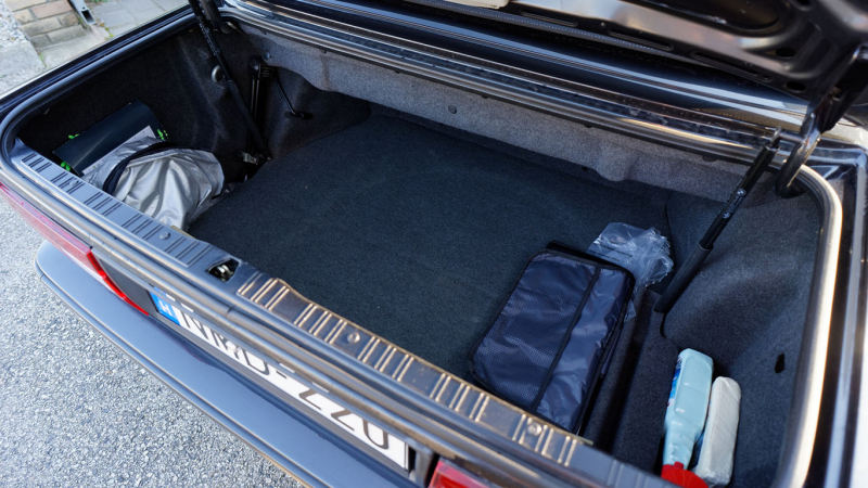 A családbarát kialakítás szempontjából a meglepően nagy és nagy nyílással rendelkező csomagtér jelenti a habot a tortán: a kabriók között papíron is soknak számít a 312 literes csomagtér, igazán kevés kabrió büszkélkedhet ilyen nagy csomagtartóval, ráadásul az E30 esetében nem változik lenyitott tetőnél a puttony mérete, a tető ugyanis nem a csomagtérbe csukódik. Ebből kifolyólag akár egy hosszabb családi nyaralásra is tökéletes partner az autó, nyilván a megfelelő kompromisszumokkal a zajszint tekintetében.