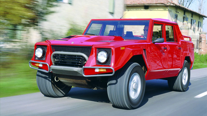 Felsorolásunk végéhez közeledve ismét kategóriát váltunk. Immár hosszú évtizedek óta, világszerte óriási népszerűségnek örvend a Jeep elnyűhetetlen és rendkívül ügyes terepjárója, a Wrangler. A CJ széria utódját, a ’86-ban debütált ’YJ’-t legkönnyebben szögletes első lámpáiról lehet felismerni. Nem csoda, hogy ügyesen mozog terepen az amerikai, hiszen a vászontetős modell (ez további pluszt jelent a hangulat terén) mindössze 3,9 méter hosszú, alig 1,3 tonna, meghajtásáról pedig nyomatékos 4,2 literes sorhatos motor gondoskodott az elején (később 2,5 és 4 literes motorok érkeztek). A skála másik végén a teljesen felesleges ’Rambo-Lambo’ terepjáró áll: a Lamborghini első összkerékhajtású modellje, az LM-002 a megalomán arab sejkeknek készült. A 2,7 tonnás behemót érdekessége, hogy a Countach 5,2 literes, 455 lóerős V12-es motorja hajtja. Étvágya alsó hangon is 30 l/100 km, manőverezhetőségét pedig jól jellemzi a 16 méteres fordulókör. Nem evilági, de kétségtelenül érdekes jószág. És persze drága gyűjtői darab.