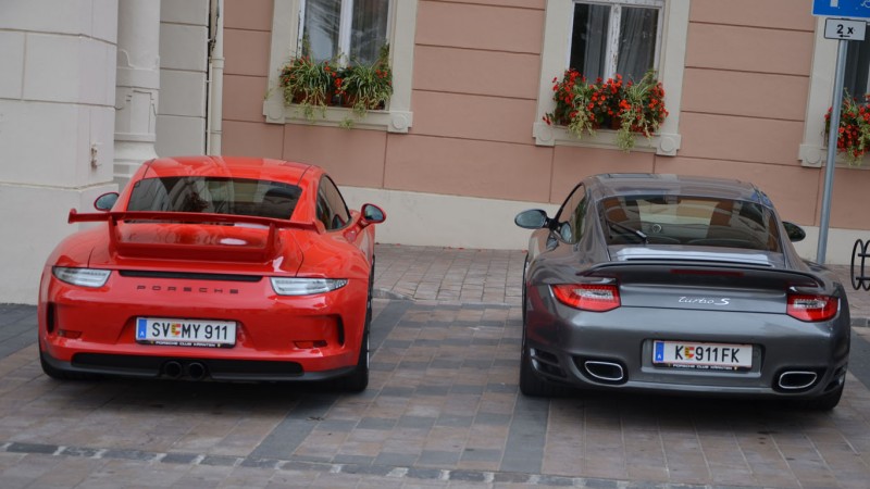 A korai, csodaszép 911-esek és 912-esek mellett említést érdemel még a szépséges 993 Turbo, valamint a vadonatúj, tűzpiros 991 GT3, amit egy osztrák Hölgy terelgetett, nem kis meglepetésünkre.
