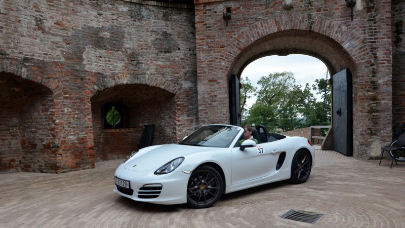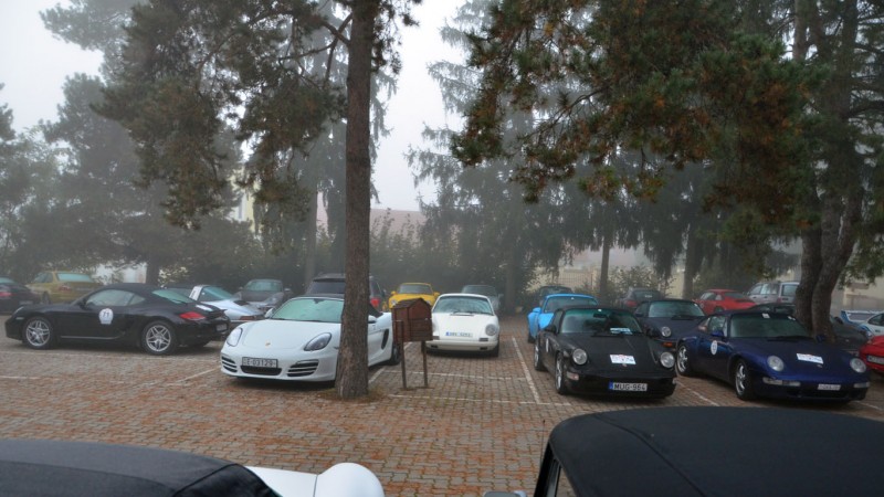 A többiek a rajtszámok sorrendjében percenkénti késleltetéssel következtek. Az időjárás tekintetében nem is kívánhattunk volna jobbat; a Porsche-motorok hangzatos dallamaira gyorsan előbújtak az első napsugarak, és szinte végig csodálatos időnek örvendhettek a túrázók. Így mi is – aminek örömére csak a rövid megállók erejéig húztuk fel a vászontetőt, amit a Boxster zseniálisan, alig 9 másodperc alatt és akár 60 km/h-s sebességig képes volt abszolválni. Az autó tesztje rövidesen érkezik.