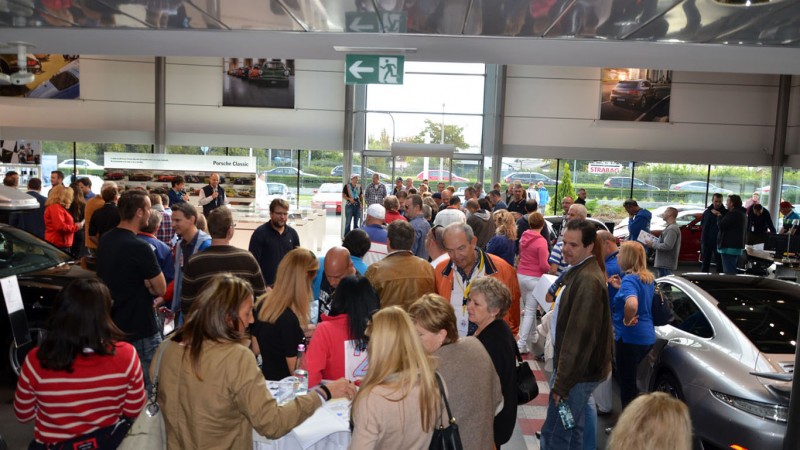 A verseny előtt mintegy 150 ember hallgatta az eligazítást a Porsche Centrumban