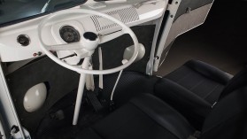 Beleértve az utasteret is, ahol lakkozott fehér műanyagokkal és fekete szövetekkel találkozhatunk, melyeket a Wolfsburg West csapatának köszönhetünk. A T1 rendkívül puritán megoldásai ellenére a restauráció után kifejezetten kívánatos lett – legalábbis annak biztosan, aki szereti az ehhez hasonló veterán járműveket. Természetesen az erőforrás és a futómű sem maradt érintetlen: előbbinek a szerepét egy 2-literes náégyhengeres szerkezet vette át, amit a Luck’s Fabshop csapata épített be, míg utóbbi hibátlan működéséről a Wagons West társulata gondoskodott.