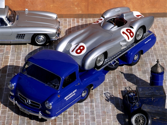 Már számtalanszor próbáltam szerkesztőségünkön belül érvelni technokrata kollegáimnak, hogy mit lehet szeretni a veterán járművekben. Aztán amikor főszerkesztőnk berakta egyik cikkem kezdőképének kedvenc makettem valóságos mását – micsoda képzavar -, akkor döbbentem rá, hogy a Mercedes 50-es évekbeli versenyautó-szállítójában szinte minden benne van, amit a régi vasakban szeretni lehet.