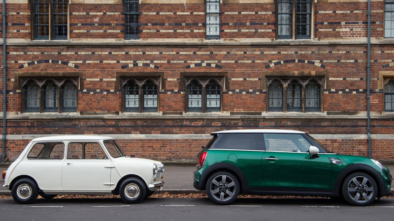 Nézzék csak, hogy az új MINI mennyivel nagyobb a réginél – a fotón a 60 éves jubileumi széria